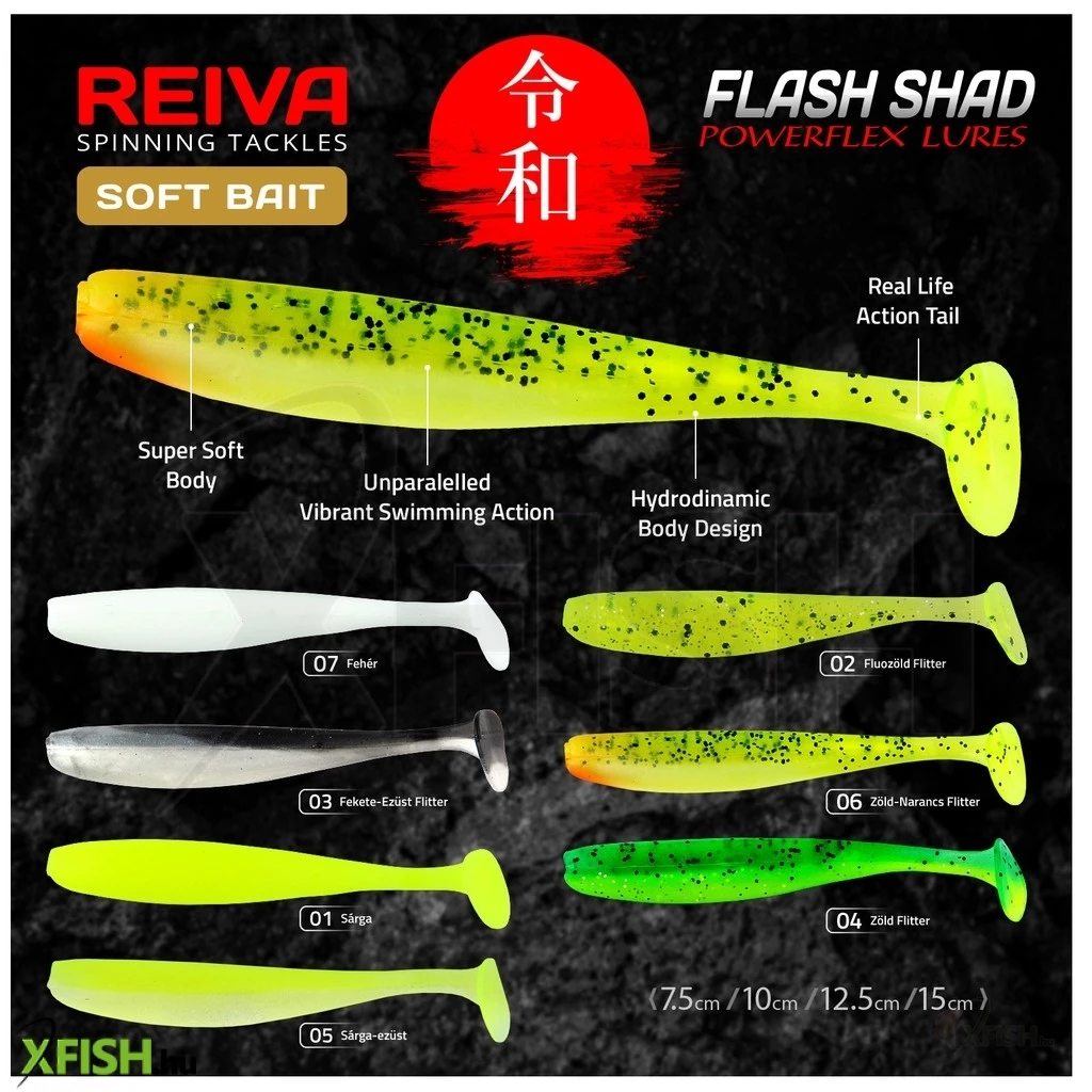 ![]() | Reiva Flash Shad Gumihal Fluo Zöld Flitter 15cm 13,26g 3db/csomag Hosszúság: 15 cm