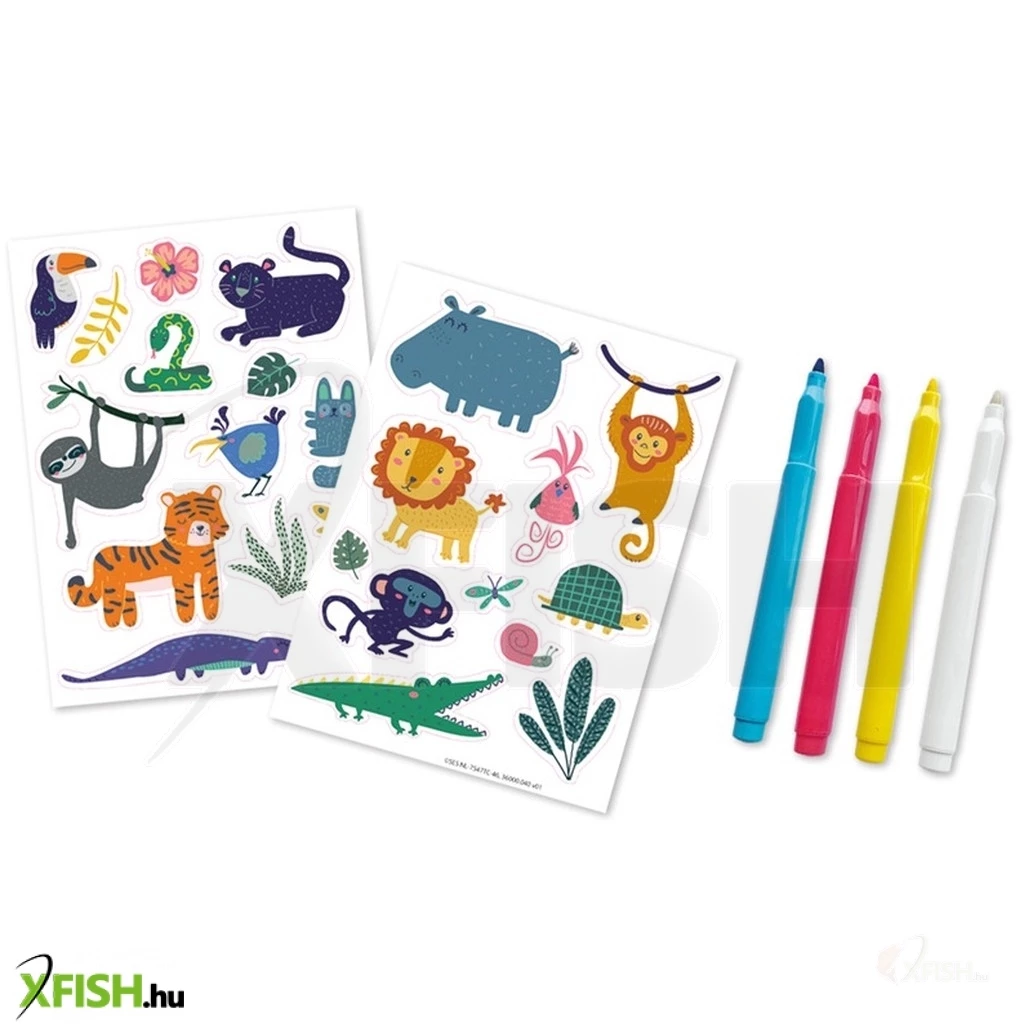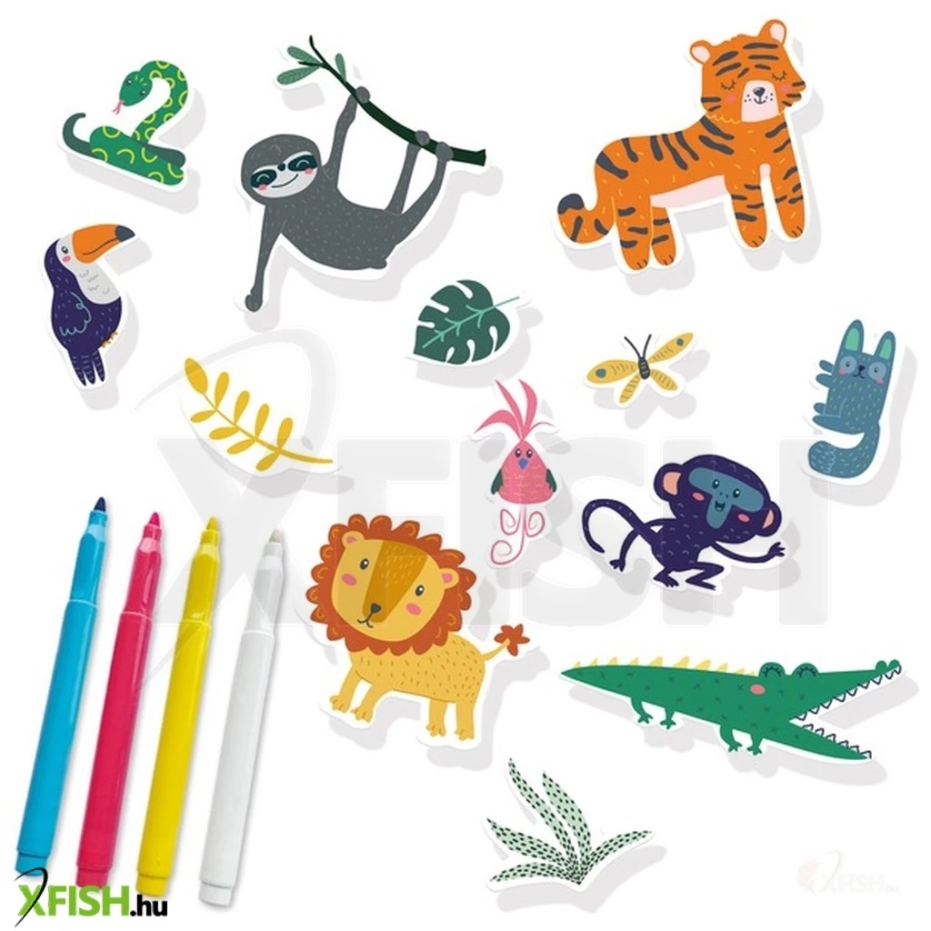 Dekoráld ki ablakodat vidám matricákkal és rajzokkal! A Ses Ablakmatrica – Dzsungel készlettel most igazi élővilágot tudsz ablakodra varázsolni! A színes ablakmatricák különböző állatokat ábrázolnak. Ragaszd fel tigrist, oroszlánt, kígyót és a többieket szobád ablakára, és az üvegre való filctollak segítségével egészítsd ki a rajzot! Kellemes időtöltés lehet ablakod díszítése, miközben új külsőt nyer szobád is a matricáknak köszönhetően. Engedd előtörni a benned lévő kreatív énedet, és készíts egy fantasztikus dzsungeles történetet ablakodra. A mókás állatos matricák percek alatt be fogják lopni magukat szívedbe. A készlet tökéletes választás lehet minden állatrajongó számára, hiszen a kollekció több mint négyféle élőlényt is tartalmaz. A filceket kifejezetten az ablakok feldíszítésére tervezték, így nem kell attól tartanod, hogy rajzod elmosódik az idő elteltével. A készlet tartalmazza az ablakmatrica gyűjteményt és 4 db színes filctollat.