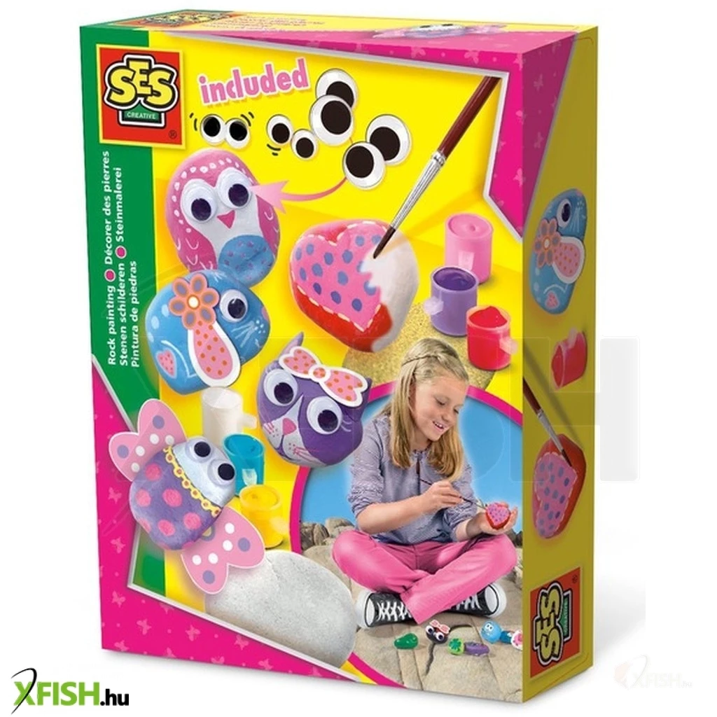 Fesd ki a kavicsokat, készíts belőlük különböző állatokat! A Ses Kavics díszítő készlet maroknyi méretű köveket tartalmaz, amiket festékekkel, és mozgó vicces szemekkel tudsz állatokká alakítani. Ragadd meg az ecsetet, kend fel a színes lakkokat, és miután megszáradt, még a szemeket is rá tudod tenni a kavicsra, így lesz belőle katicabogár, cica, vagy épp nyuszi. A köveket matricákkal tudod még érdekesebbé, egyedibbé tenni. A Kavics díszítő készlet csomagolási méretei: 15 x 4 x 20 cm.