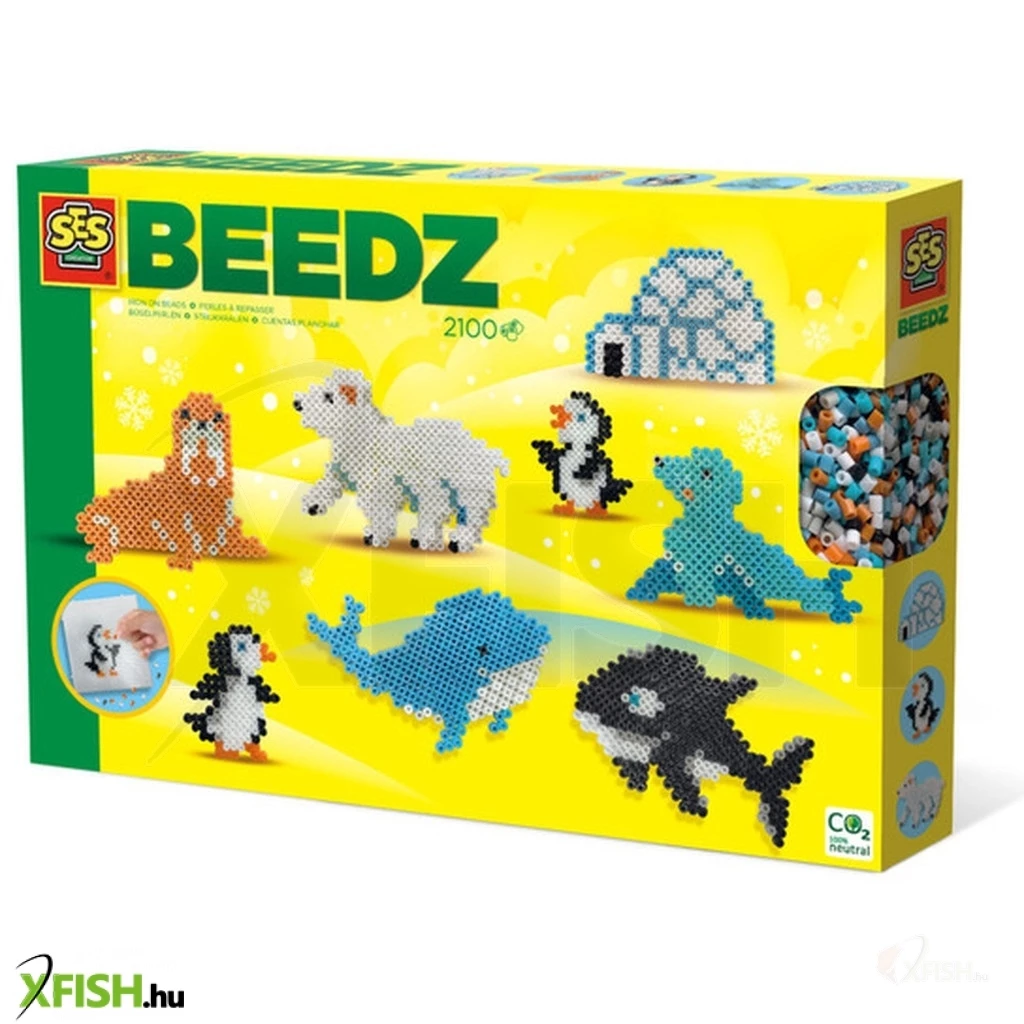 Brrr… ezek az állatok hideg éghajlaton élnek. Ezzel a vasaló gyöngyökkel készlettel pedig mindet elkészítheted! Építs iglut, jegesmedvét vagy kíváncsi pingvineket, vagy merülj el az óceánban a rozmárral és a gyilkos bálnával. A Ses Creative Beedz-ével könnyedén elkészítheti ezeket a sarkvidéki állatokat. Ez a készlet tartalmaz egy négyzet alakú fogas deszkát, 2100 vasalót gyöngyön, vasalólapot és gyönyörű mintákat.