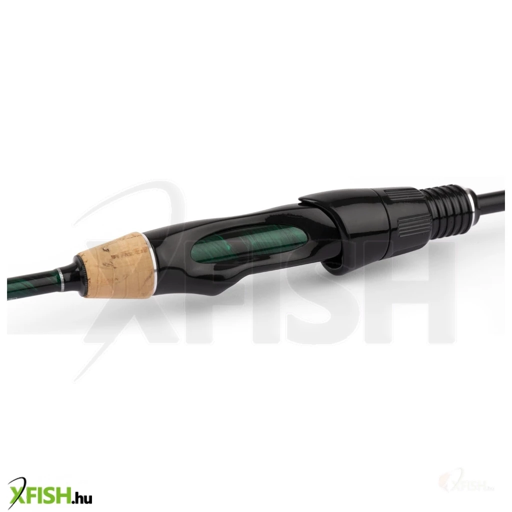A horgászbotot Fuji Alconite KR-típusú gyűrűkkel látták el, amelyek biztosítják a sima és zökkenőmentes zsinórvezetést, míg a fényes fekete Fuji orsótartó növeli a felszerelés esztétikus megjelenését és funkcionalitását. A bot nyélborítása egy különleges karbon parafa kombináció, ami nemcsak kényelmes fogást biztosít hosszabb horgászatok során, hanem stílusos megjelenést is kölcsönöz a botnak.