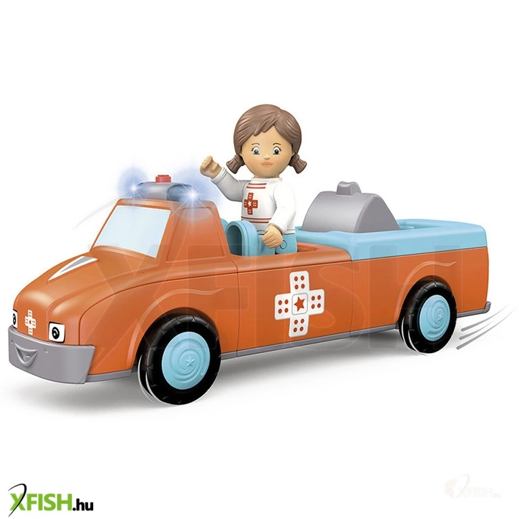 Anna Amby mentőautója 3 kattintható részből áll, súrlódó motorral, valamint fény- és hangrendszerrel.