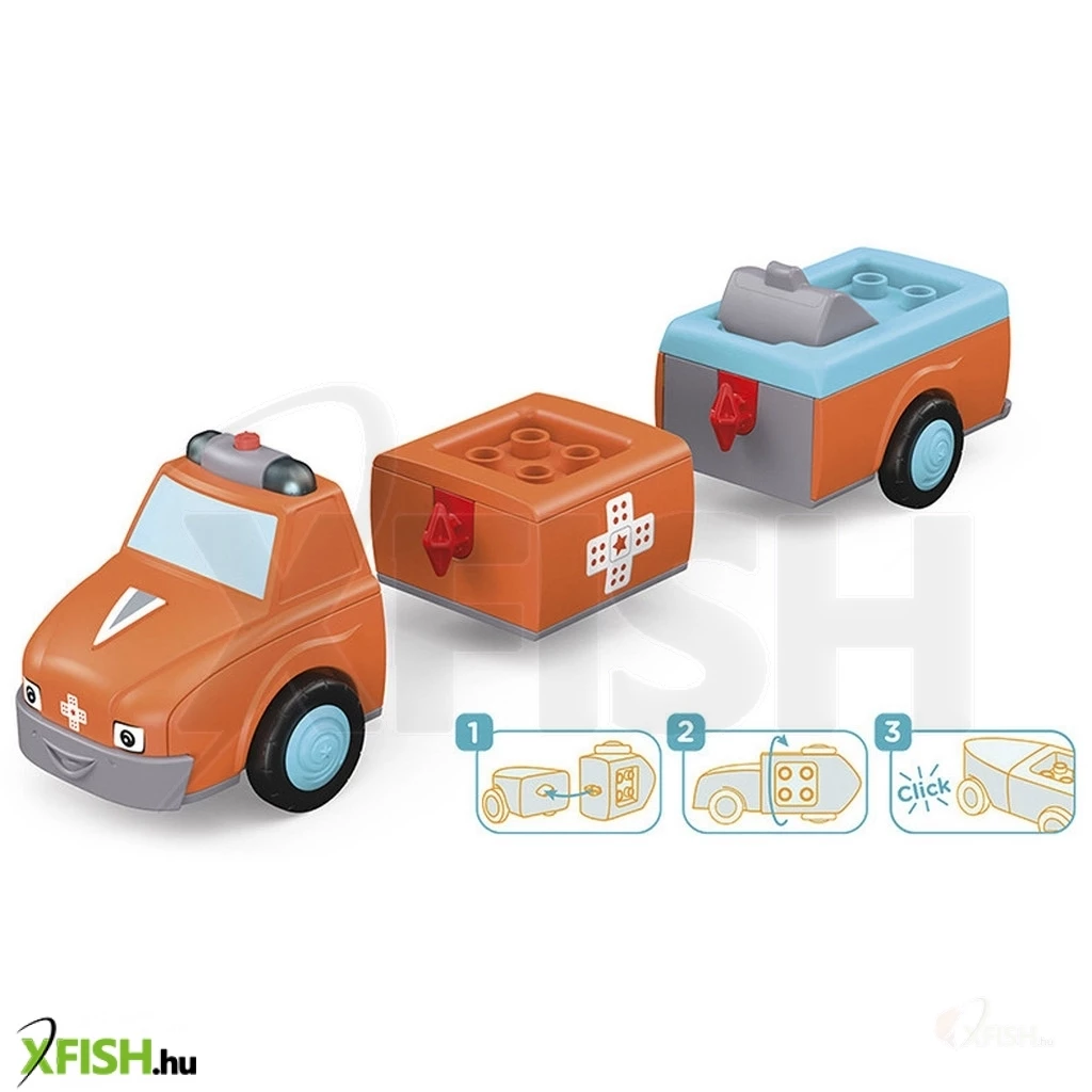 Ez a mentőjáték a Toddy’s termékcsalád része – összepattintható járművek aranyos, mozgatható figurákkal/karakterekkel és súrlódó motorokkal. A csavarható és zárható rendszer azt jelenti, hogy a darabok felcserélhetők az összes Toddy’s járművel, így bármilyen kombinációban keverhetők és összeilleszthetők. Más gyártók építőkockáival is kompatibilisek.
