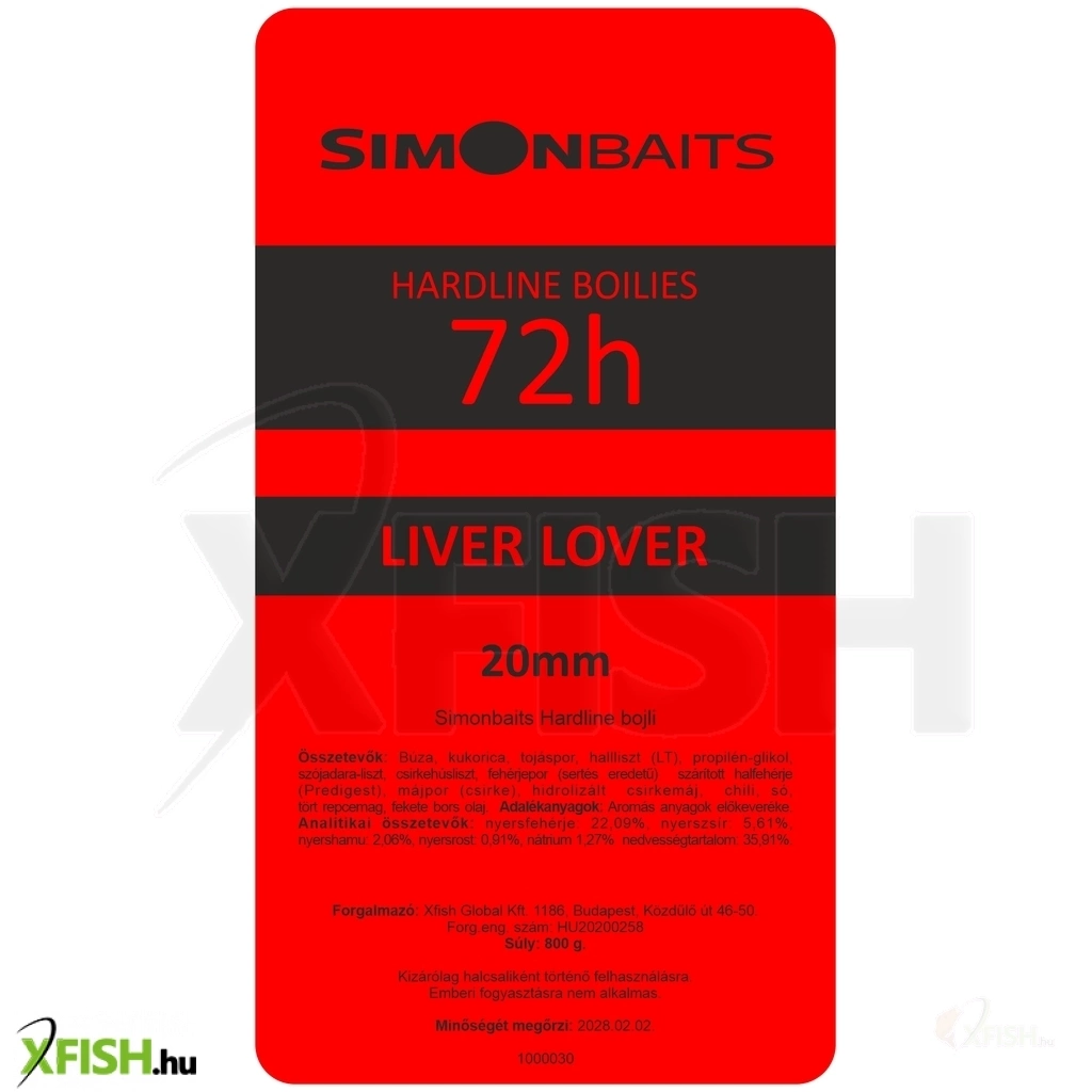 Simon Baits Hardline Bojli 72H Liver Lover-Májas fehérjedús 20 mm 800 g