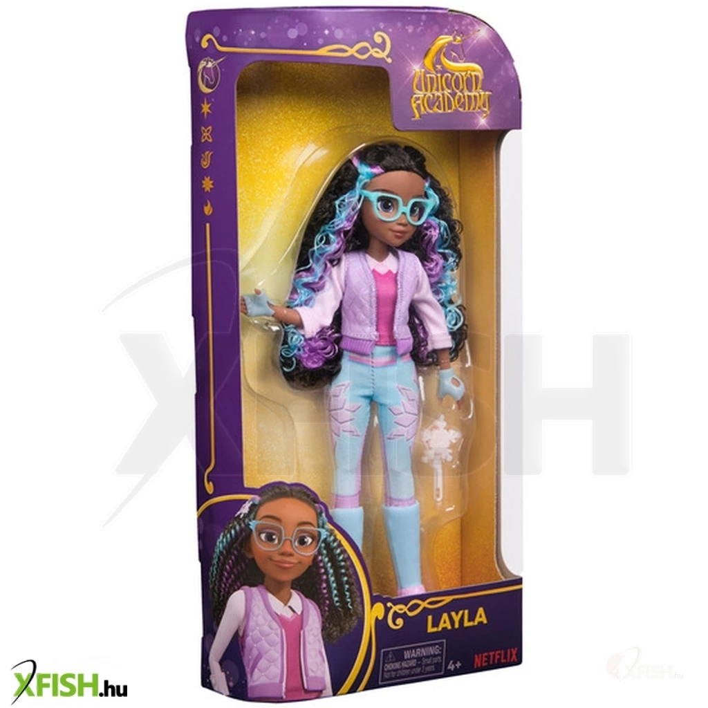 A Spin Master Unicorn Academy – Layla divatbaba a népszerű Unicorn Academy animációs sorozat karaktere alapján készült. Layla egy okos, kíváncsi lány, aki az akadémián tanul, és különleges kapcsolatot alakít ki a Glacier nevű unikornissal, amely jégvarázslattal rendelkezik.