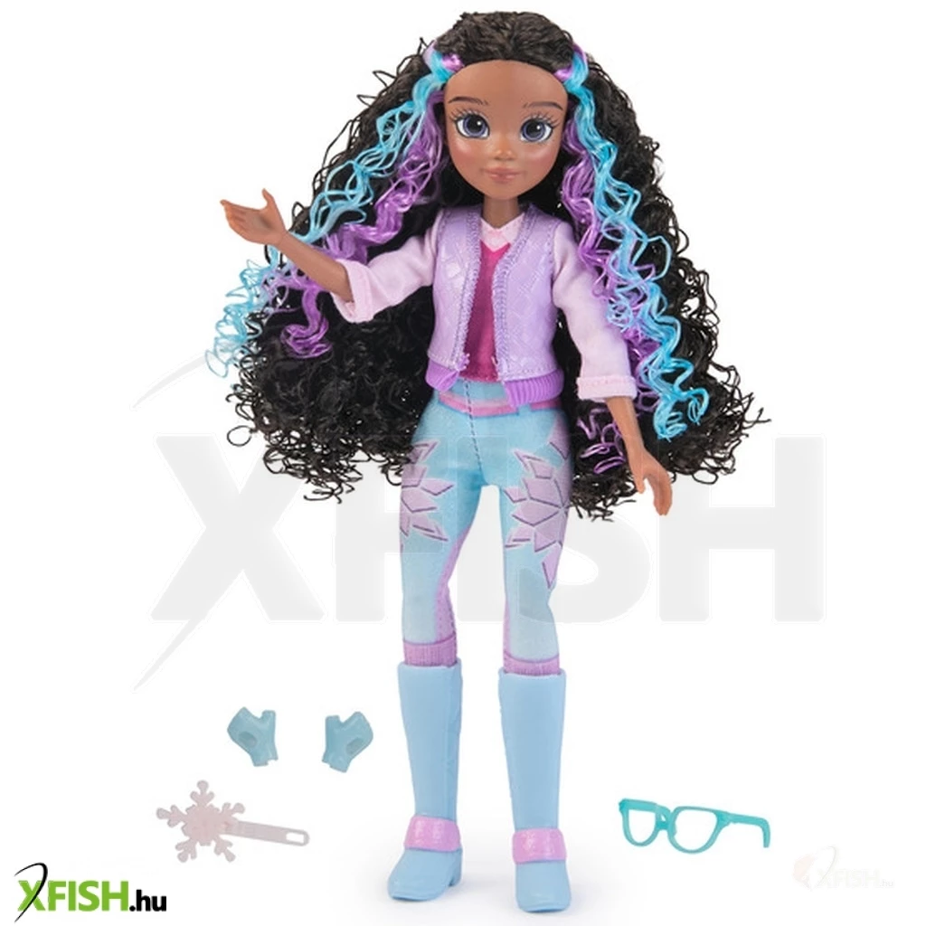 A részletgazdag baba hosszú, göndör hajjal és a sorozatból ismert lovas ruhával érkezik. A mozgatható végtagoknak köszönhetően különböző pózokba állítható, így a gyerekek könnyen eljátszhatják kedvenc jeleneteiket vagy saját mágikus történeteket találhatnak ki. A készlet több tematikus kiegészítőt is tartalmaz – például szemüveget, csizmát, kesztyűt és hajformázó eszközt –, amelyek még izgalmasabbá teszik a játékot.