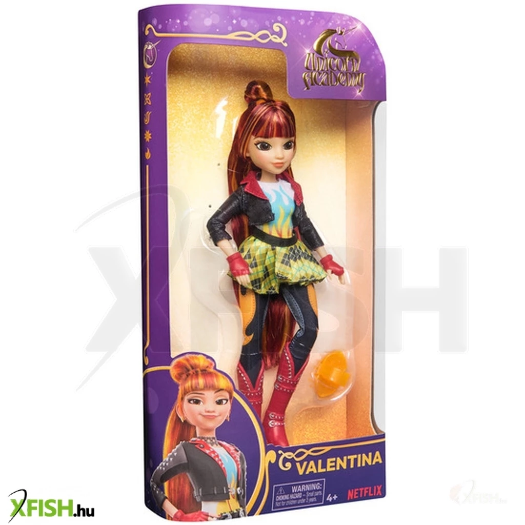 A Spin Master Unikornis Akadémia – Valentina divatbaba a népszerű Unicorn Academy sorozat karaktere alapján készült, és a varázslatos unikornisos kalandok világába repíti a gyerekeket. Valentina egy magabiztos, energikus személyiségű tanuló az akadémián, aki mindig a legjobbra törekszik, és különleges kapcsolatot ápol Cinder nevű tűzmágiával rendelkező unikornisával.