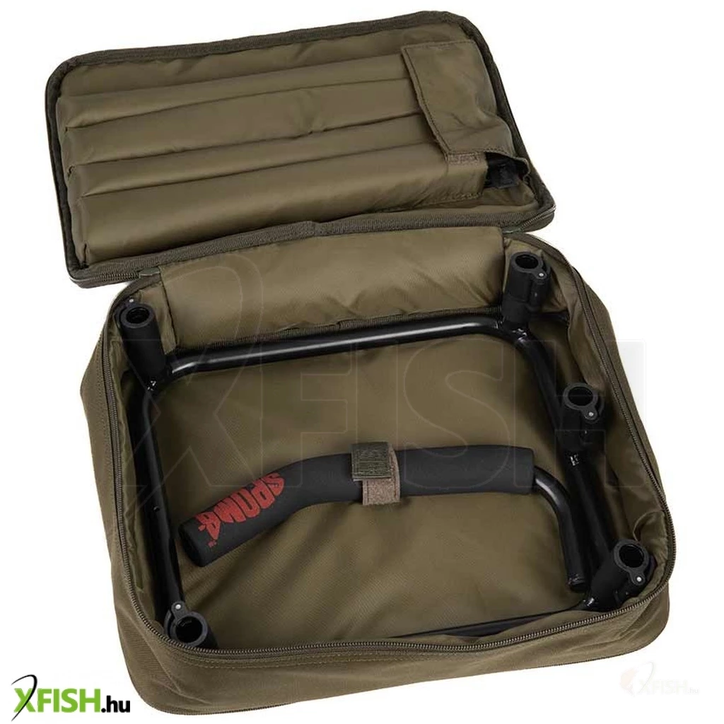 A Spomb MK2 Bucket Stand Single vödör tartó állvány egy praktikus és kompakt megoldás, amely megkönnyíti az etetés előkészítését azáltal, hogy a csalis vödröt kényelmes magasságban tartja. Gyors cam-lock mechanizmusának köszönhetően stabilan és biztonságosan állítható, lábai pedig könnyedén alkalmazkodnak az egyenetlen talajhoz. Beépített párnázott bottartóval rendelkezik, amely lehetőséget ad a bot ideiglenes elhelyezésére az etetés során. Könnyen szállítható és összecsukható kialakítása miatt ideális választás minden horgász számára, aki kényelmes és rendszerezett megoldást keres a parton.