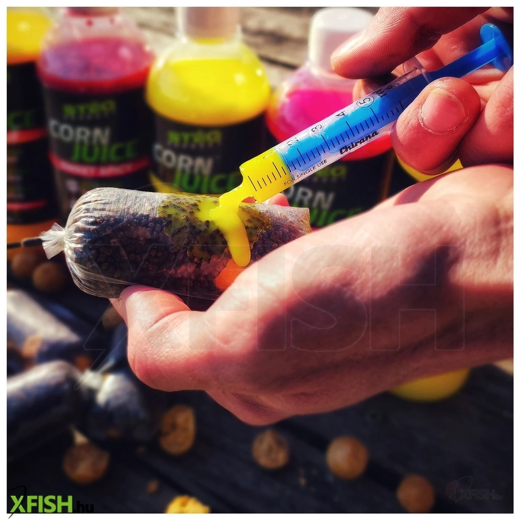 A Corn Juice-zal benedvesített etetőanyagot nagyon hosszú ideig lehet tárolni hűtés nélkül is, az eredeti minőség megőrzése mellett. Pva-s horgászatra is eredményesen használható. A PVA mixeket, pelleteket a felhasználás előtt be kell locsolni Corn Juice-zal és megvárni míg a szemcsék felszívják magukba az anyagot.