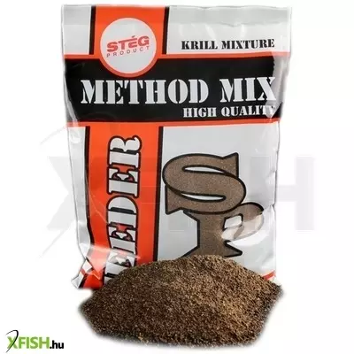 A Krill Mixture Method Mix kiváló minőségű összetevőkből álló etetőanyag.A szemcseméret és az anyagok összetételének köszönhetően az oldódás folyamatos,mivel a különböző anyagok egymástól eltérő időben oldódnak fel,ezért a mix folyamatosan fejti ki csalogató hatását. Az anyag szerkezete úgy lett kitalálva, hogy a bekeverésnél a víz mennyiségi hozzáadásával szabályozni tudjuk az oldódási, bontási sebességet.