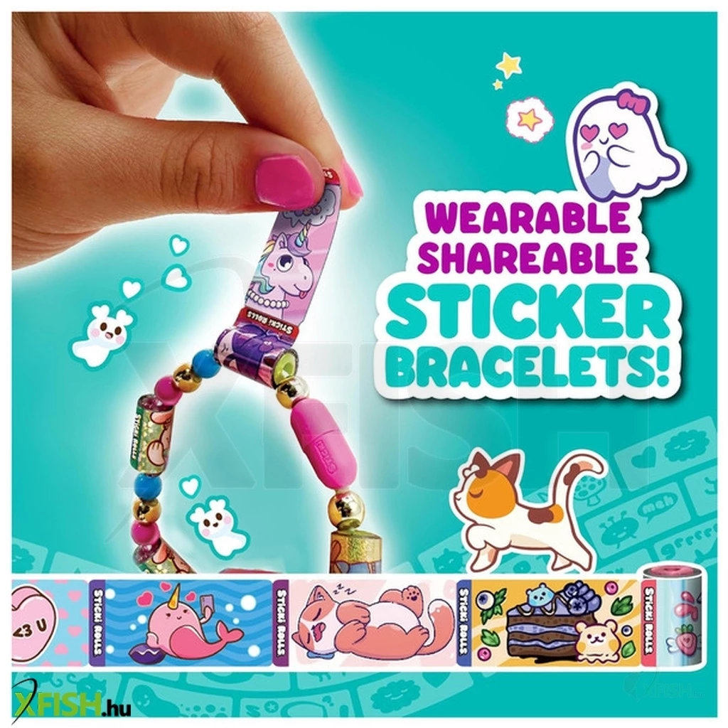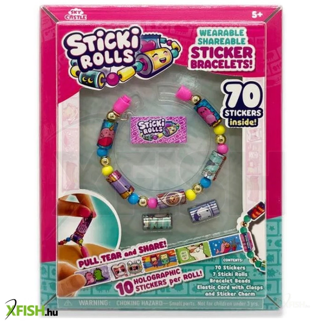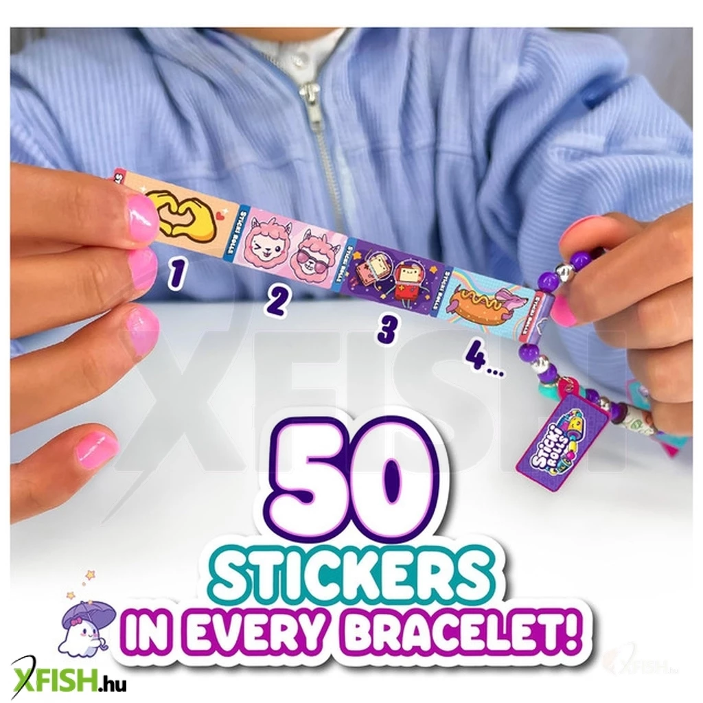 A Sticki Rolls matricás karkötő egy különleges, divatos kiegészítő és kreatív játék egyben. A karkötőn kis charmok vagy mini tekercsek találhatók, amelyek holografikus vagy színes matricákat tartalmaznak. A gyerekek bármikor letéphetnek egy matricát, így mindig kéznél vannak kedvenc dekorációik.