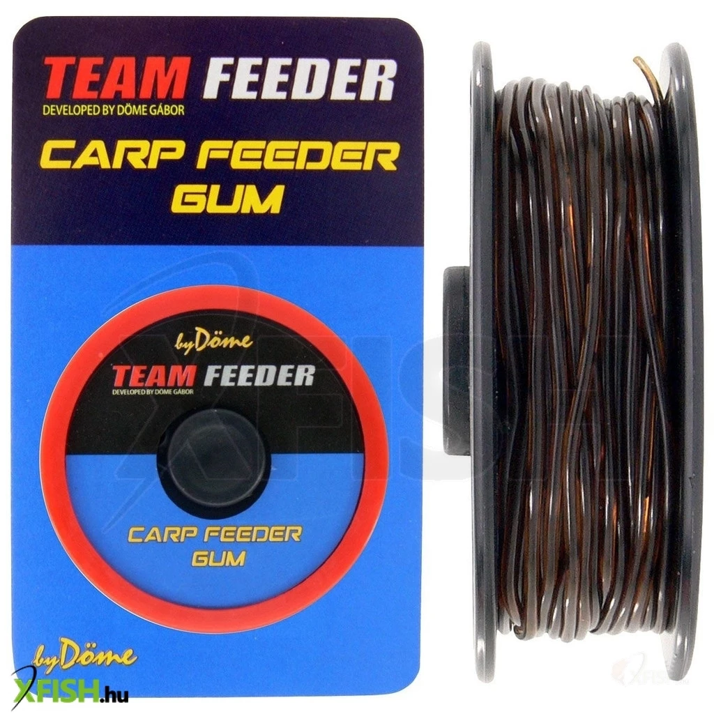 Egyre népszerűbbek az erőgumival ellátott végszerelékek, illetve method kosarak, melyeknél sok esetben tapasztalható, hogy a gumi túlságosan hamar elgyengül, elhasználódik és terhelhetősége már nem lesz arányban a felszerelés többi részével. Ennek megoldására egy újabb hasznos kiegészítővel bővítettük a By Döme TEAM FEEDER termékek sorát, mely nem más, mint a Carp Feeder Gum névre hallgató pontyos erőgumi széria. E rendkívül erős, de rugalmas kialakítású guminak az a szerepe a szerelék működése során, hogy eloszlassa, kompenzálja a dobások, bevágások, illetve fárasztások során keletkező többletterhelést, s ezáltal megakadályozza a halvesztést, netán rosszabb esetben a főzsinór vagy az előke szakadását. Nem véletlen, hogy sokan kedvelik a gumis összeállításokat, hiszen megfelelő használat mellett töredékére csökkenthető általuk a halvesztések száma! Ha a bevágás túl erősre sikeredett, esetleg horog gyengén akadt, vagy kifejezetten apró horgot és vékony monofil előkét használunk ez a gumi éppen annyi plusz lágyságot, biztosít, ami a kellő időben csillapítja a kritikus pontokon fellépő erőhatást! Megfogalmazhatjuk úgy is, hogy a horgász hibáját képes nagy hatékonysággal kijavítani, tolerálni. Tökéletes megoldást kínál többek között a method feederes végszerelékek elkészítéséhez, ahol az a célja, hogy a rövid előke miatti drasztikus kapások vehemenciáját csökkentse.
