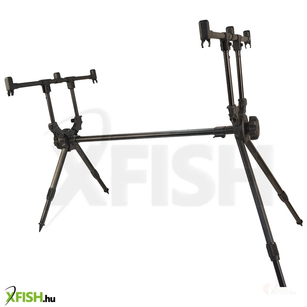 A The One Fast Series Rod Pod nevéből egyértelműen kiderül, hogy egy egyszerű, praktikus és gyorsan felállítható, valamint összecsukható rod pod-ról van szó. 3 botos változatban elérhető, ezért kis helyet foglal és nem kell minden horgászat végén teljesen szétszedni, majd a következő horgászat alkalmával összerakni. Az elöl és hátul lévő rögzítők kitekerésével a lábak a helyükre kerülnek, ezután már csak rögzíteni kell őket a rögzítő visszatekerésével. A buzz bart egyszerűen egy csatos rögzítési módszerrel lehet a helyére tenni, magassága állítható. Középen kihúzható, így hosszabb botokat is biztonsággal használhatunk vele. Az első és hátsó lábak magassága állítható, ezáltal a terepviszonyoknak megfelelően stabilan tudjuk felállítani akár nehezebb terepen is.