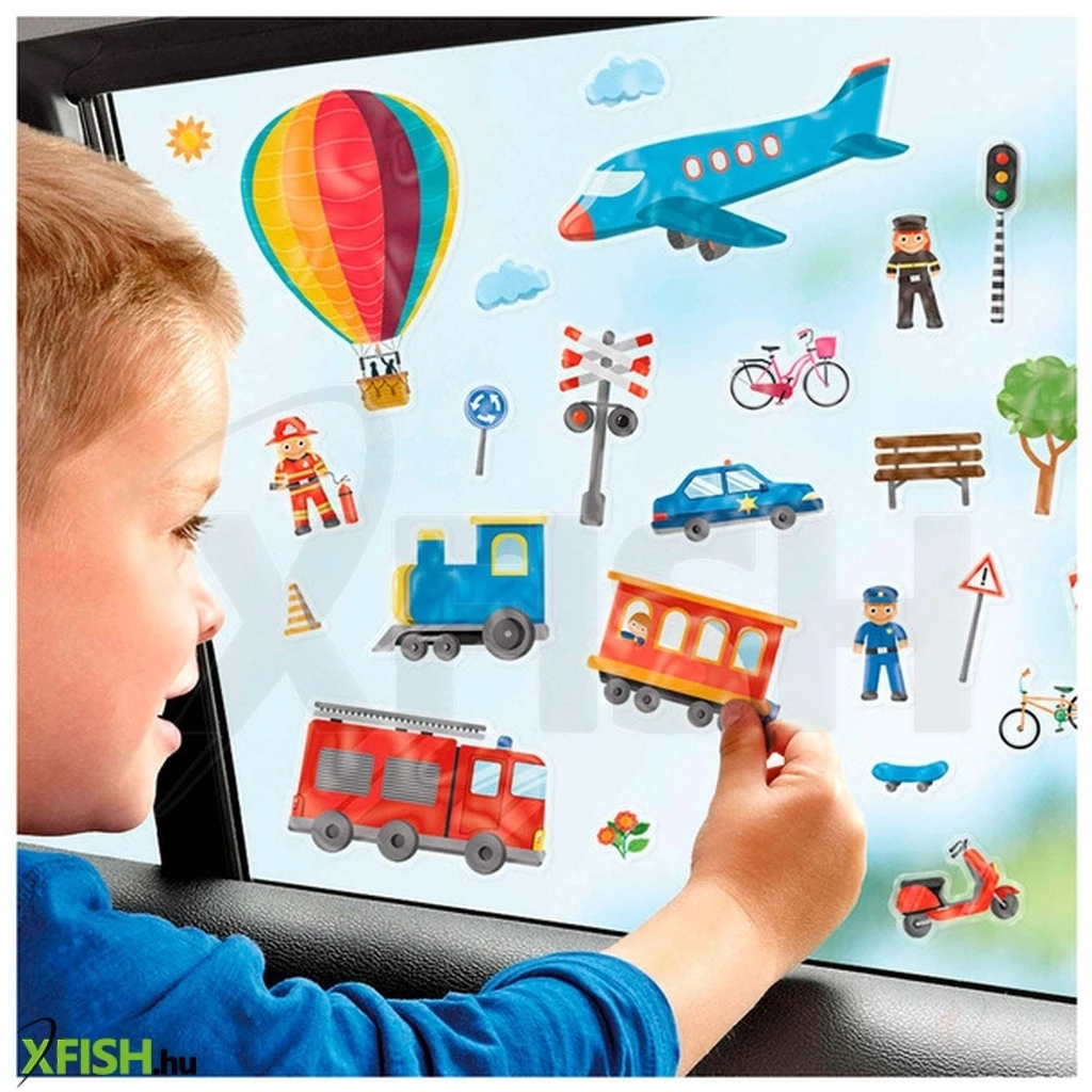 Sok ragacsos szórakozás egy hosszú utazás alatt! Autóval, vonattal megy minden olyan helyre, ahová szeret- A matricákat a mellékelt díszleten is használhatja. A matricák újrafelhasználhatók, könnyen eltávolíthatók és kreativitást serkentenek.