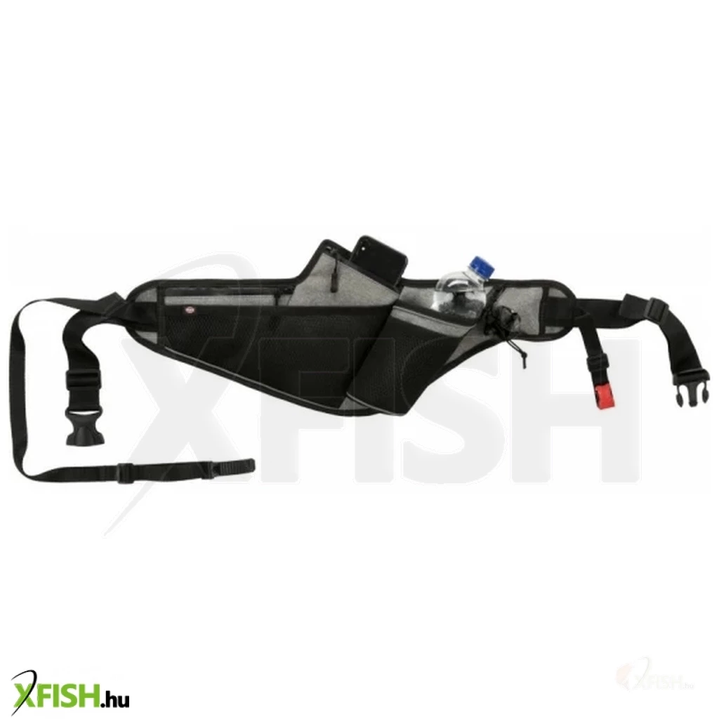 Még esős, vagy rossz időben is minden sportoló számára megfelelő a vezetőszárral ellátott deréköv - a vízlepergető anyag és a vízálló cipzárok megakadályozzák, hogy víz jusson a zsebekbe. Sötétben, vagy rossz látási viszonyok között a táskán és a pórázon lévő fényvisszaverő elemek hívják fel a figyelmet a futókra és kedvenceikre. A széles, ergonomikus szabás kényelmes viseletet biztosít, a hát és a has területén található betétek pedig megakadályozzák a túlzott izzadást.