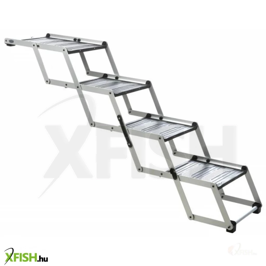 A masszív alumíniumból készült 4 lépcsős összecsukható lépcsők texturált vagy profilozott lépcsőkkel rendelkeznek, amelyek minimalizálják a csúszás kockázatát nedves vagy vizes állapotban. A kutyalépcsők 2 különböző szélességre és hosszúságra állíthatók, így különböző autómodellekhez alkalmasak. A hozzá tartozó lökhárítóvédelem megakadályozza a karcolásokat. Tároláshoz a lépcsőfokok összehajthatók, így helytakarékosság érdekében az autóban tárolhatók.