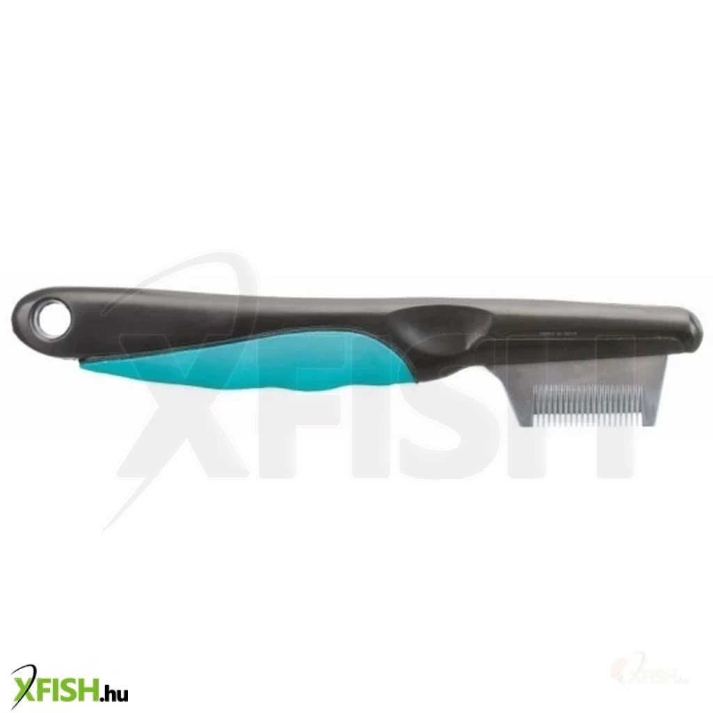 Jobbkezes használatra kifejlesztett, rozsdamentes acélból készült, műanyag gumi markolatú fogantyúval ellátott trimmelőkés fejre és fülekre. Nyírásra és formázásra is alkalmas. Méret: 19cm. Ne hagyja kedvencét felügyelet nélkül a termékkel. Származási hely: a csomagolásra nyomtatva. Forgalmazza: Alpha-Vet Állatgyógyászati Kft., 1194 Budapest, Hofherr A. u. 42. vevoszolgalatbp@alpha-vet.hu