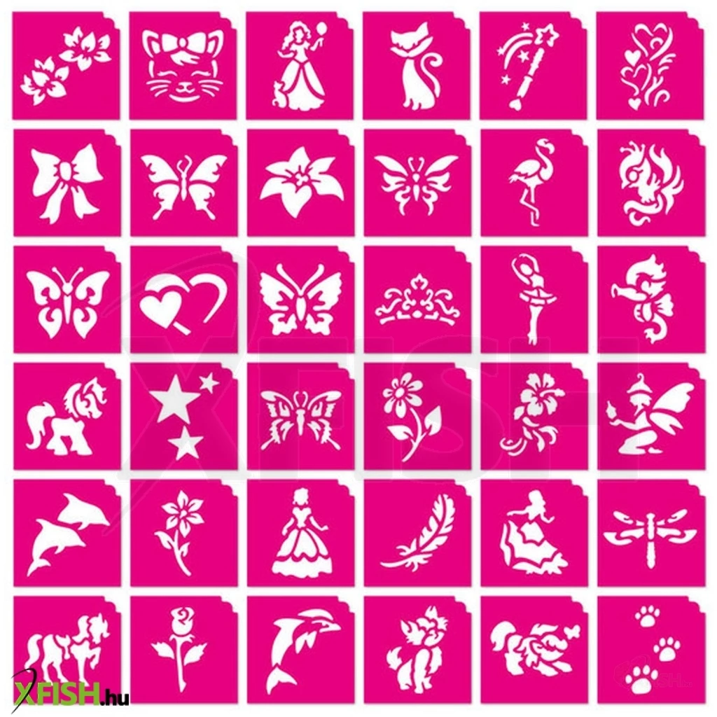 A gyermeked imádott lányos sablonjait festheti meg három egyszerű lépésben. Helyezzük a sablont arra a testrészre, ahova szeretnénk a csillámtetoválást, fessük meg, húzzuk le a sablont. És készen is vagyunk.