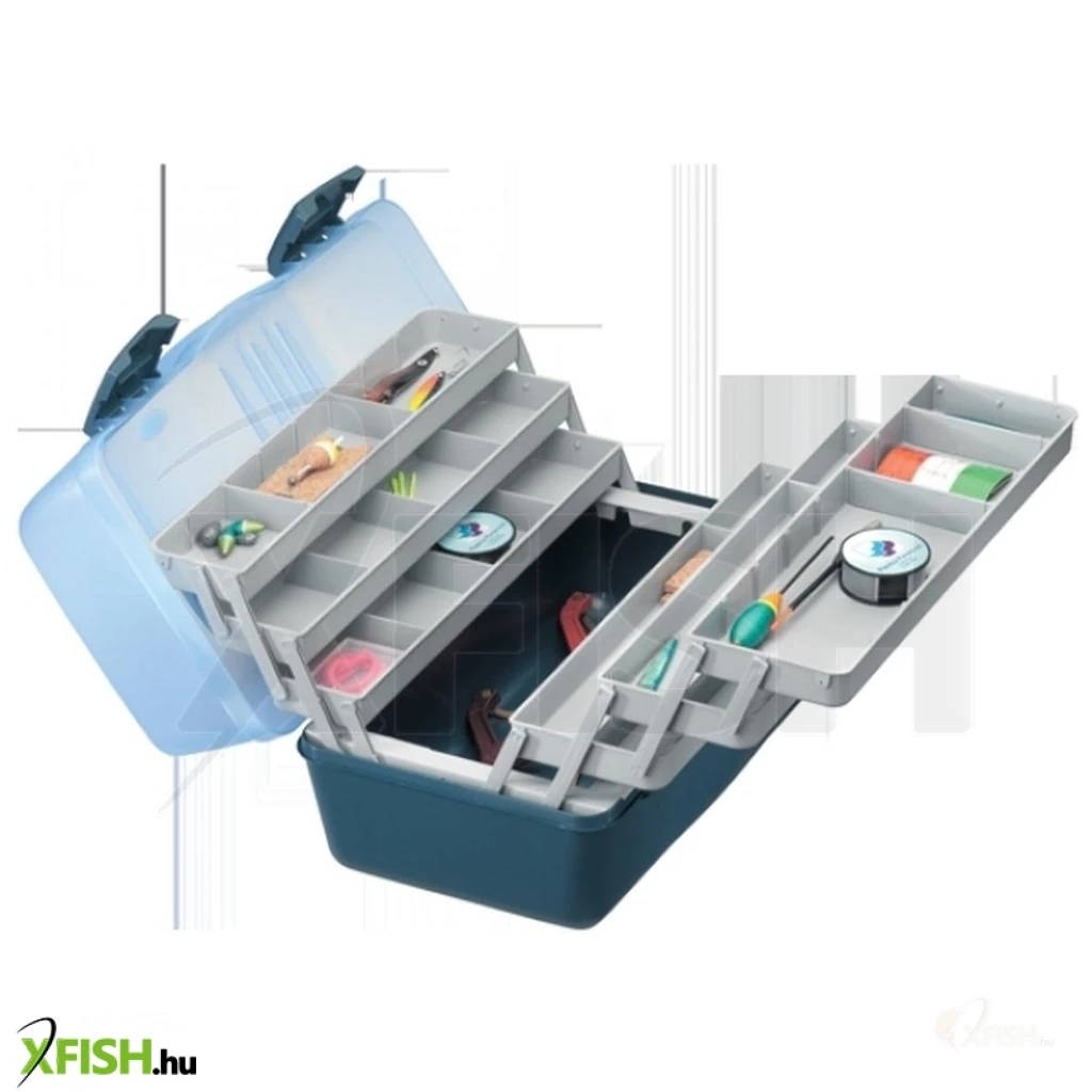 PANARO LÁDA 46*28,2*25,3cm kék. Kiválóan pakolható, egy mély nagy rekeszből és több rendszerező tálcából álló horgászláda. A láda ütésálló műanyagból készül.