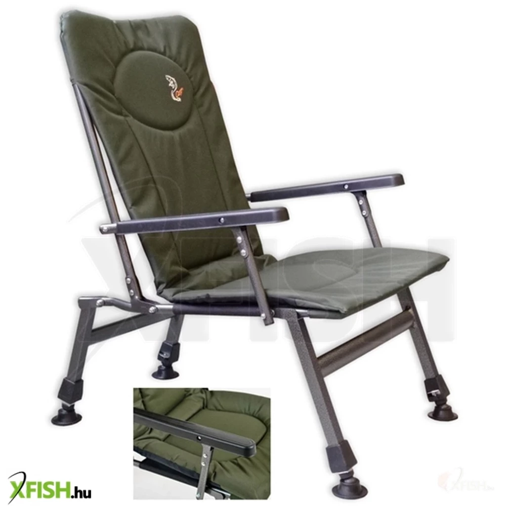 A horgászok kényelmére tervezett Carp F8R karfás horgász fotel zöld színben nem csupán egy szék, hanem a pihenés és a hatékonyság tökéletes ötvözete a vízparton eltöltött időhöz. Ezt a prémium kategóriás, párnázott horgász fotelt nagy teherbírású szövetből készítették, amely biztosítja a tartósságot és a maximális kényelmet hosszú órákon át tartó horgászat során. Az állítható lábmagassággal igazán személyre szabható az optimális ülőhelyzet elérése érdekében, így bármilyen terepviszonyok között könnyedén komfortosan elhelyezkedhet.