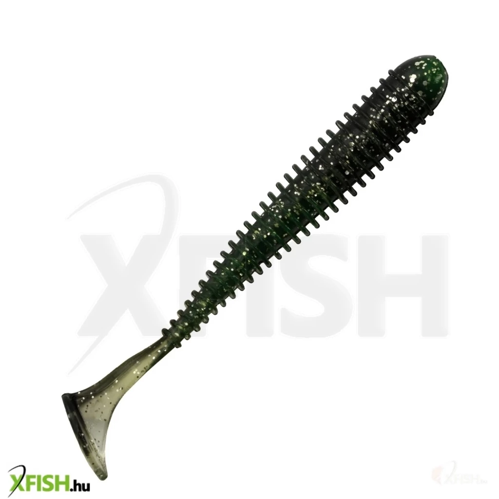 A bordás teskialakításnak köszönhetően nem csak a farok ad le rezgéseket,hanem a test is.Off-set horoggal szerelve a vízinövényes helyen is eredményesen használható.A lágy gumikeveréknek köszönhetően egyedi mozgása van,amellyel a tesztelések során rengeteg süllőt és sügeret adott.Csalogató anyagot tartalmaz.-7,5cm-6db/csomag-sötétzöld szín