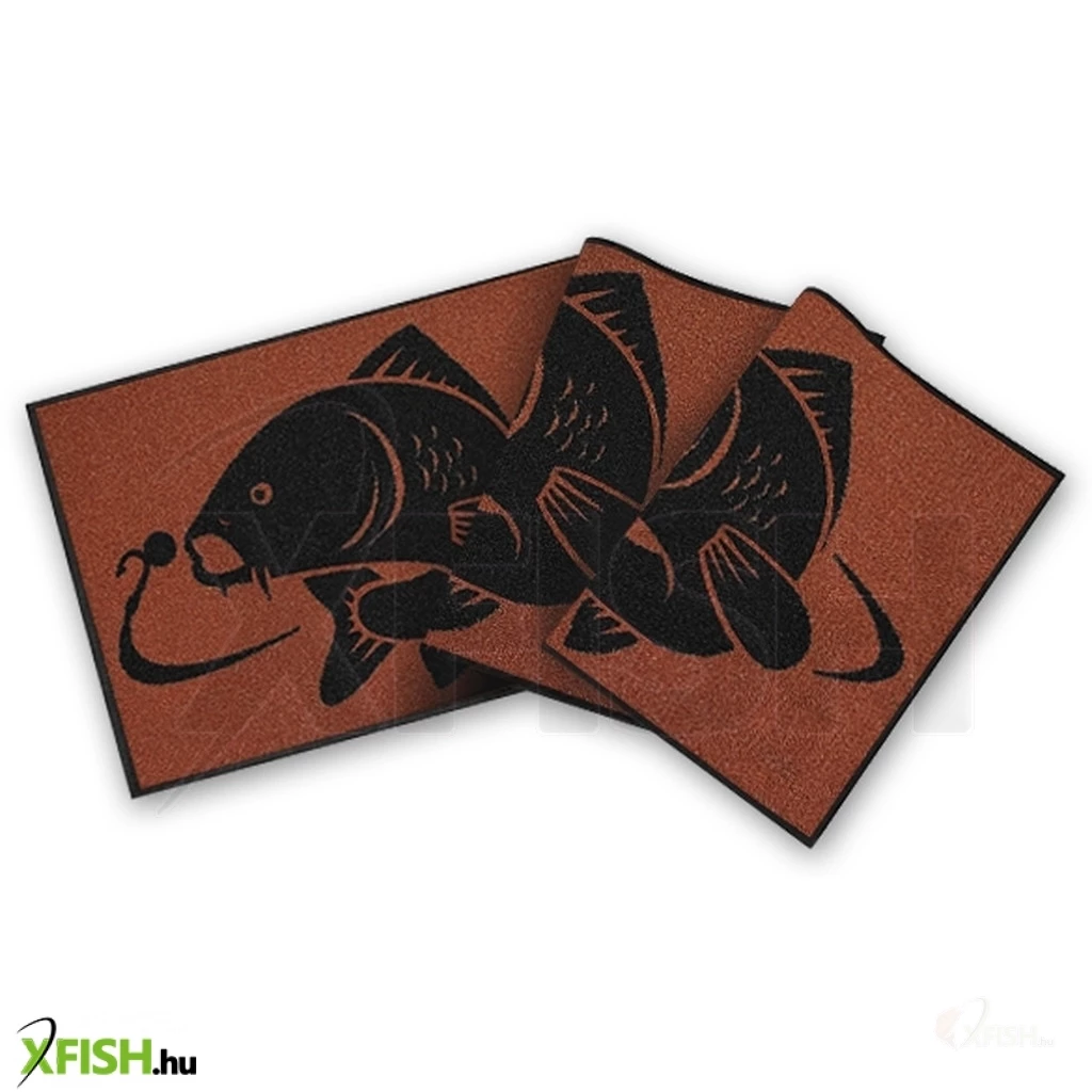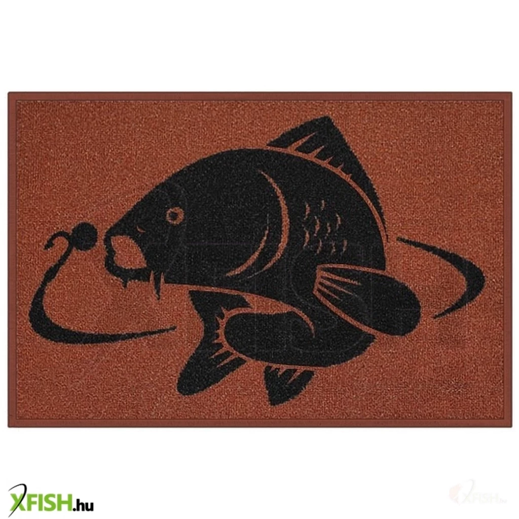 Igényes barna szőnyeg, feltűnő ponty mintával, amely minden horgásznak tetszeni fog. Ellenálló anyagból készül fekete szegéllyel, alsó része pedig latex réteggel van kezelve. 60x40cm-es mérete megfelel minden bejárati ajtóhoz. Mutassa meg vendégeinek ki a főnök a házban!