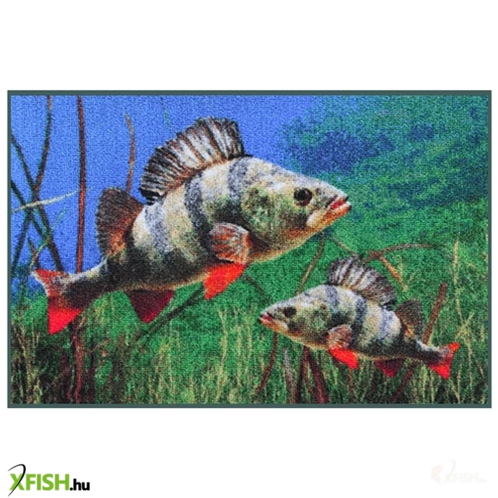 Kíváló szőnyeg 3D sügér motívummal a víz alatt, minden horgásznak tetszeni fog. Ellenálló anyagból készül, a széleket sötétzöld szegély keretezi, az alsó részt pedig latex réteg védi. 60x40cm-es méretével bármely bejárati ajtó elé illik. Mutassa meg vendégeinek ki a főnök a házban!