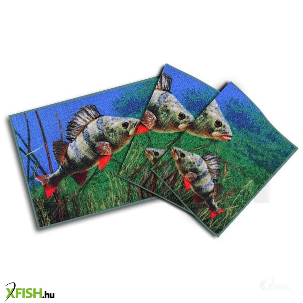 A vízfelszín alatt úszkáló sügérek feltűnő, 3D motívumával díszített szennyfogó szőnyeg. Bizonyára minden horgász megörül neki.A szőnyeg ellenálló anyagból készül, sötétzöld varrású szegéllyel, alsó része latex réteggel kezelt. 60 x 40 cm-es mérete rendkívül kompakt, és az összes bejárati ajtóhoz illik. Mutassa meg vendégeinek már a bejáratnál, hogy ki az úr a háznál :)