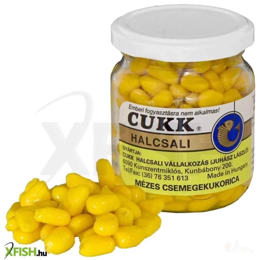 A CUKK szines üveges horgászkukoricák sértetlen, egész kukoricaszemeket tartalmaznak. A szemek keménysége és horogállósága ideális. A méz ízesítés a halak egyik nagy kedvence, legyenek azok keszegfélék, pontyok, amurok. Jó fogási eredmények és rengeteg kapitális példány kifogása fűződik a CUKK ezen termékéhez. Felbontva és gondosan visszazárva még hónapokon át is folyamatosan felhasználhatók a megromlás veszélye nélkül. A CUKK szines üveges horgászkukoricáihoz felhasznált festékanyagok élelmiszerminősítésüek, az egészségre és a környezetre veszélytelenek.