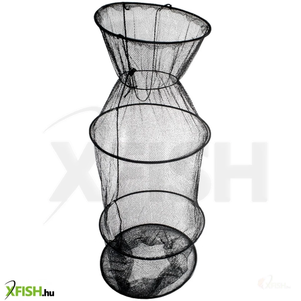 Hálós anyagát 4 db karika merevíti, mely megkönnyíti a halak mozgását a haltartón belül, így azok kevésbé akadnak bele és tovább életben maradnak.