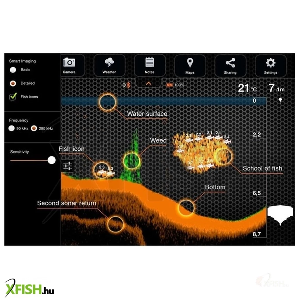 A Deeper szonár ultrahang segítségével tapogatja le a kiválasztott területet, és az összes adatot vezeték nélkül, valós időben továbbítja okostelefonodra, vagy tabletedre. Az innovatív Smart képalkotó eljárás részletes és kristálytiszta képi információt ad a mederről, annak szerkezetéről, a növényzetről, a halakról, a vízhőmérsékletről és még sok mindenről, egyenesesen okostelefonodon, vagy tableteden megjelenítve azt. Mostantól tudod majd, hol vannak a tuskós akadók a fenéken, hol a mederesés, vagy akár csak egy kis iszapkúp. A Deeper halradar segít megjelölni a legjobb horgászhelyeket, így kevesebb időt töltesz majd felesleges keresgéléssel.