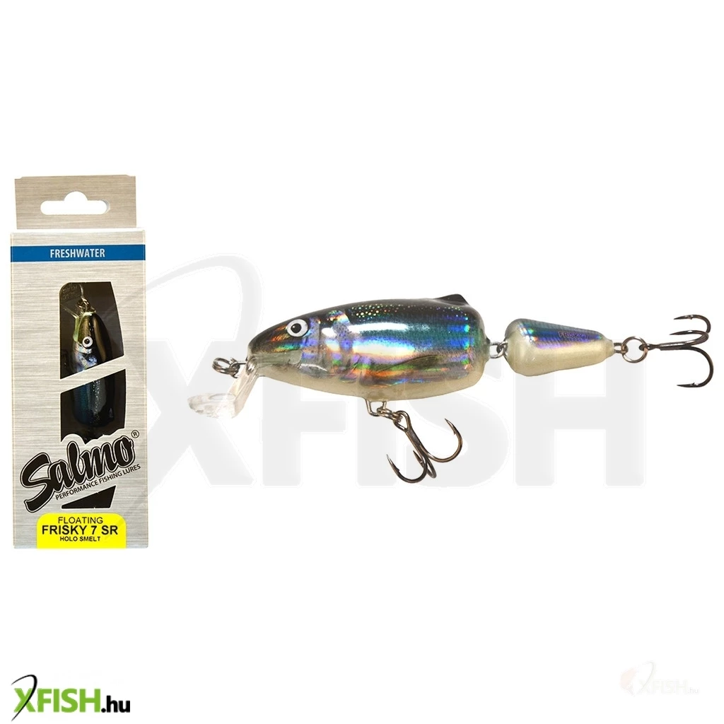 A Salmo cég legifjabb gyermeke ez a kétrészes modell. Hosszú éveken át kísérleteztek a kétrészes műcsalikkal, míg kialakult a végleges forma. A tervezők legfontosabb feladata volt a hidrodinamikai és a aerodinamikai tulajdonságokat megfelelően kiválasztani és egybegyúrni. Azaz amellett, hogy a gyors bevontatás során is kiegyensúlyozottan működik, dobás közben, a levegőben is jól viselkedik, nem akad vissza, mialatt igen távolra dobható. A Frisky egyféle méretben, kétfajta kialakításban kapható: rövid csőrrel felszíni, míg hosszú csőrrel mélyretörő változatban. Halfajok: csuka, süllő, pisztráng, sügér Speciális helyek, szituációk: Folyókon tavakon kora nyáron a felszíni, míg később a mélyretörő változat ajánlott