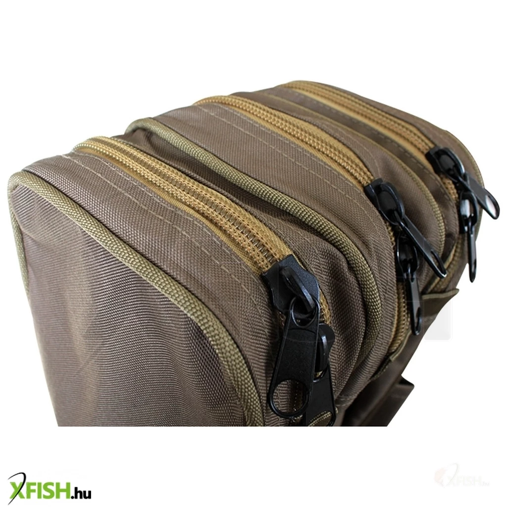 További praktikusságot nyújtanak a botzsák oldalain elhelyezett zsebek. A 25x22x4 cm-es zsebekben kényelmesen elférnek kisebb tárgyak, mint például napszemüveg, kapásjelző vagy fogó. A táska másik oldalán található hosszú zseb, melyet cipzárral láttak el, lehetőséget nyújt a merítőháló és leszúrók tárolására is. Ez a zseb 120 cm hosszúságú, ami bőséges helyet biztosít a szükséges kiegészítők szállítására.