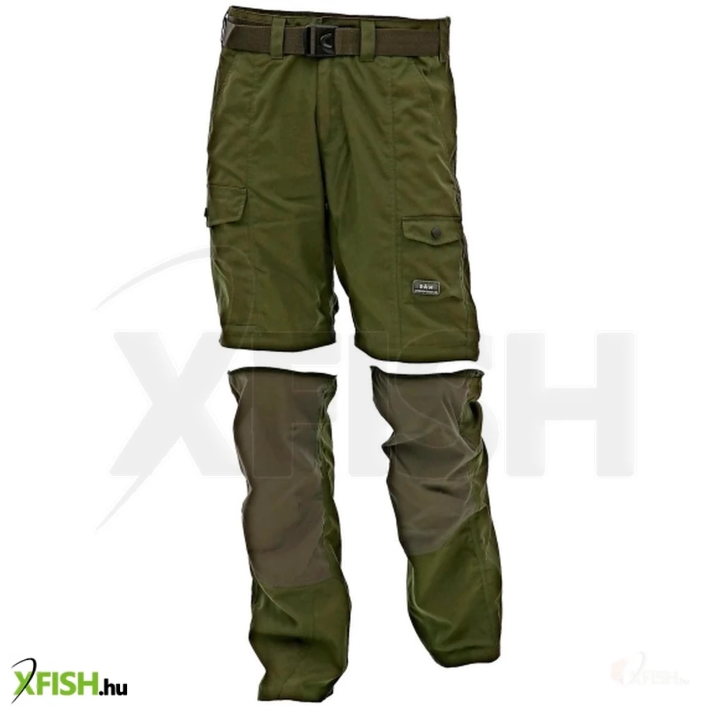 DAM HYDROFORCE G2 COMBAT horgásznadrág. Az DAM HYDROFORCE G2 horgász ruházat kollekciója minden évszakra kínál kényelmes praktikus és divatos laza viseletet. Ez a COMBAT G2 hosszú nadrág kiváló minőségű, prémium ruházat, tökéletes és kényelmes viselet a horgászparton tavasztól-őszig. Erős, kopásálló, non irritating alapanyagokból készült: 65% poyester, 35% gyapjú. A nadrág különlegessége, hogy átalakítható nyári viseletté. A térd felett található cipzárral levehető a nadrág szára egy mozdulattal. Az ülep és térd rész vízálló DuPont Teflon, így ha a parton letérdelünk szereléket igazítani, vagy a hajnalii párás ködös horgászat során leülünk egy nedves-vizes helyre nem ázunk át, ami egy szeles hűvös napon elég kényelmetlen. A térd rész kialakításakor, a gyártó arra is ügyelt, hogy behajlított lábbal se feszüljön meg a nadrág ezért a térdbetét vastag erős anyaga finoman túlméretezett, redőzött. A nadrág dereka, illetve az öv bújtatók erősítve vannak, hogy a nagyobb igénybevétel esetén se szakadhasson el. Sok apróságnak van hely a nadrág zsebeiben, a 2db felső zsebben és a 2db comb zsebben rengeteg holmi fér el.