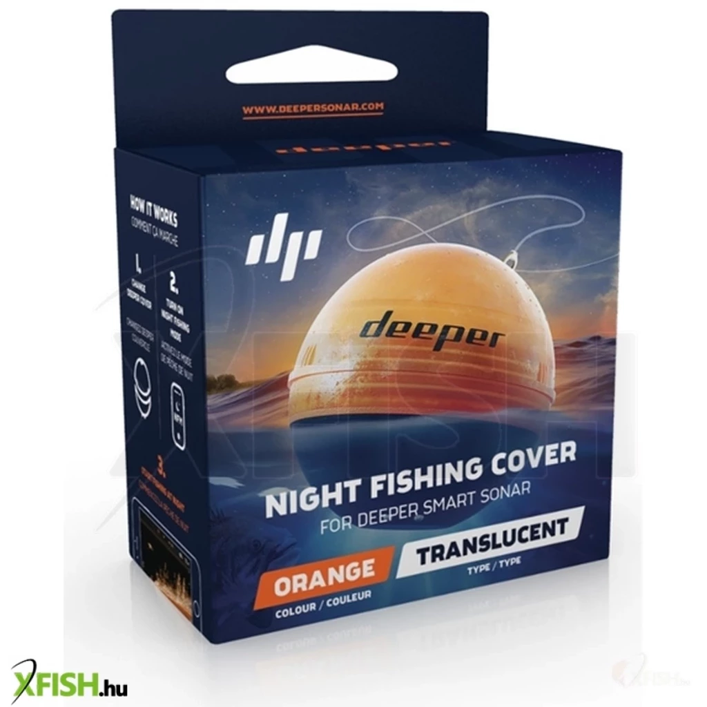 Az Éjszakai horgászati fedél tervezése speciálisan a Deeper okos halradarokhoz történt, az eszköz működőképességének optimalizálásához és éjszakai használatához. Az éjszakai horgászati fedél lehetővé teszi, hogy a fényes villogó LED fénye áthalad az áttetsző narancssárga fedélen, ezért távolról is és sötétben is egyértelműen látható. Ezért a Deeper eszköz nem fog elveszni látóköréből.
