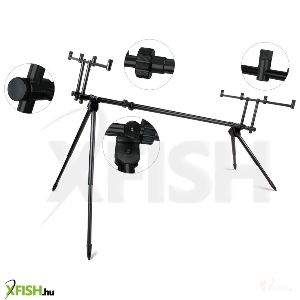 A rod pod alapja stabil alumínium vázra épül, amely egyensúlyt és tartósságot biztosít, még a legszelesebb napokon is. Az állítható vázhosszúság lehetővé teszi, hogy a rod podot a vízparti körülményeknek megfelelően igazítsa, míg a lábhosszúság állítási lehetősége további rugalmasságot kínál az egyenetlen terepen való optimális használatra.
