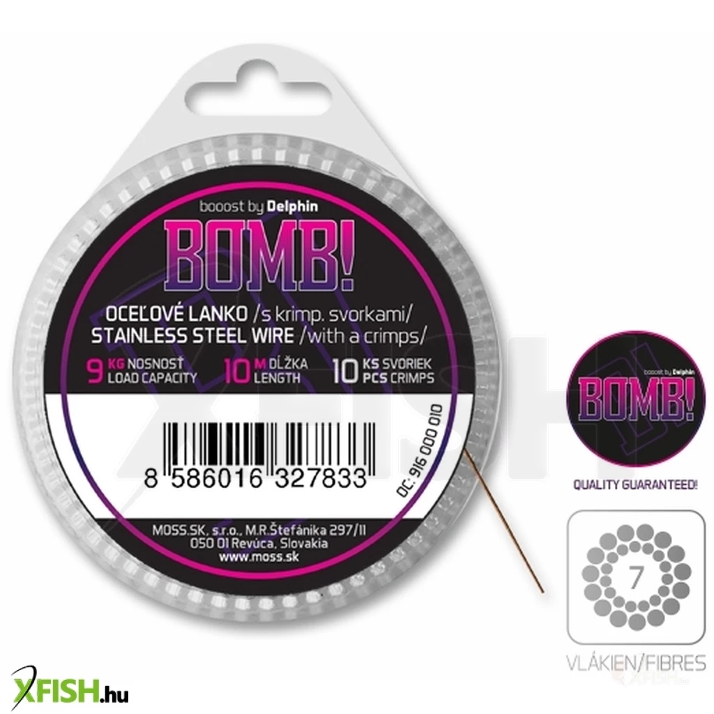 A BOMB! pergető acélhuzal a Delphintől, mely 7 rozsdamentes szálból van fonva (megjelölése 1x7). Jellemzője a nagyon sima felület, a nagy terhelhetőség és a jó ellenálló képesség a mechanikus sérülések ellen. A huzal lágy, így könnyű vele dolgozni, valamint jól dolgozik a vízben. Ezt a huzalt nem harapja át a legnagyobb ragadozó hal sem!