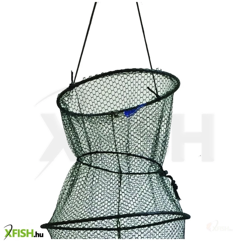 EUrostar karikás haltartó háló. A halak tárolására szükségünk van egy megfelelő minőségű és méretű haltartóra. Az erősített szövésű klasszikus hálóanyag mely természetes szálból készül, szinte elszakíthatatlan, míg természetes anyagának köszönhetően halbarát ,tehát nem dörzsöli ki a halak bőrét. Hossza 90 centiméter, szélessége 35 cm, melyben kényelmesen eltárolhatunk 3-4 kiló apróhalat, vagy a megengedett pár darab nemes halat. A 4 db karika megkönnyíti a halak mozgását a haltartón belül ezért tovább életben maradnak.
