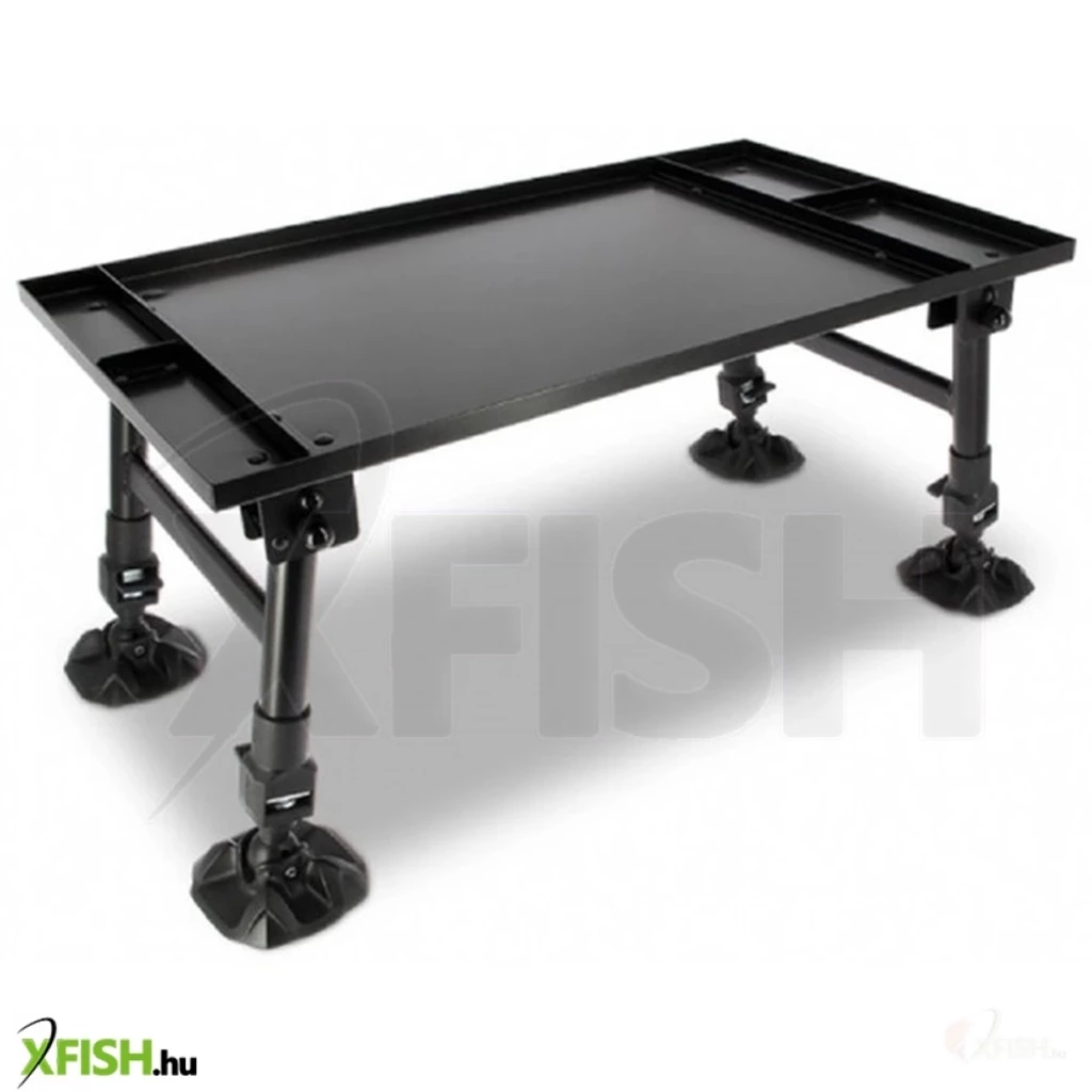 Ez a dinamikus sátorasztal teljes fémszerkezetből készült, alumínium anyagának köszönhetően könnyű, mégis ellenáll a szélnek, így nem kell aggódnia, hogy egy váratlan széllökés felborítja. A négy, teljesen állítható magasságú láb sártalpakkal van ellátva, ami garantálja, hogy bármilyen talajviszonyhoz könnyedén alkalmazkodik. Ez a funkcionalitás biztosítja, hogy a horgász mindig kényelmesen és stabilan tudja elhelyezni felszerelését.