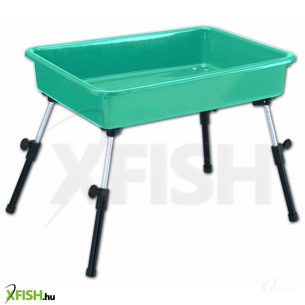 Az asztal különleges jellemzője a teleszkópos lábak, amelyek 17 és 25 centiméter között állíthatók. Ez a funkció lehetővé teszi a felhasználó számára, hogy egyenetlen terepen is stabilan állítsa fel az asztalt, így biztosítva a kényelmes horgászatot minden körülmények között.