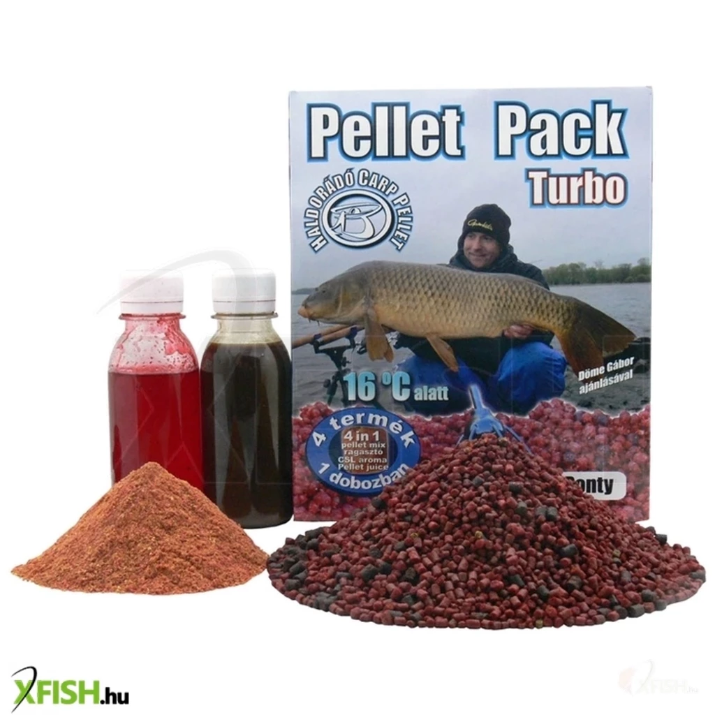A Haldorádó Pellet Pack szélsőséges időjárási körülményekre továbbfejlesztett változata a Pellet Pack Turbo, ami két típusban készült el. Az egyik a Fagyos Ponty, míg a másik a Tüzes Ponty. A Pellet Pack Turbo akkor igazán hatásos, amikor a vizek hőmérséklete túlságosan hideg vagy nagyon meleg. A speciális adalékanyagok, aromák és csipetnyi titok teszi extrém körülmények közepette is a nagy halak ellenállhatatlan csemegéjévé a Turbo változatot! A Pellet Pack kifejlesztésénél egyértelműen az volt a cél, hogy egy olyan komplett csomag készüljön el, amely a modern, céltudatos pontyhorgászat leghatékonyabb csalogatóanyagait tartalmazza.
