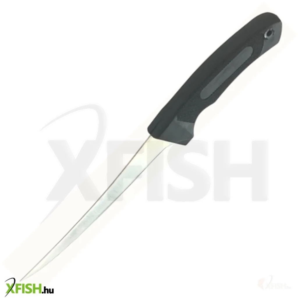ROZSDAMENTES ACÉL FILÉZŐKÉS 16,5CM PENGE. Kiváló minőségű acél filézőkés. 16,5cm hosszúságú penge, 13,5cm hosszúságú gumi markolat. A késhez 1db, övre csiptethető műanyag tok is tartozik.