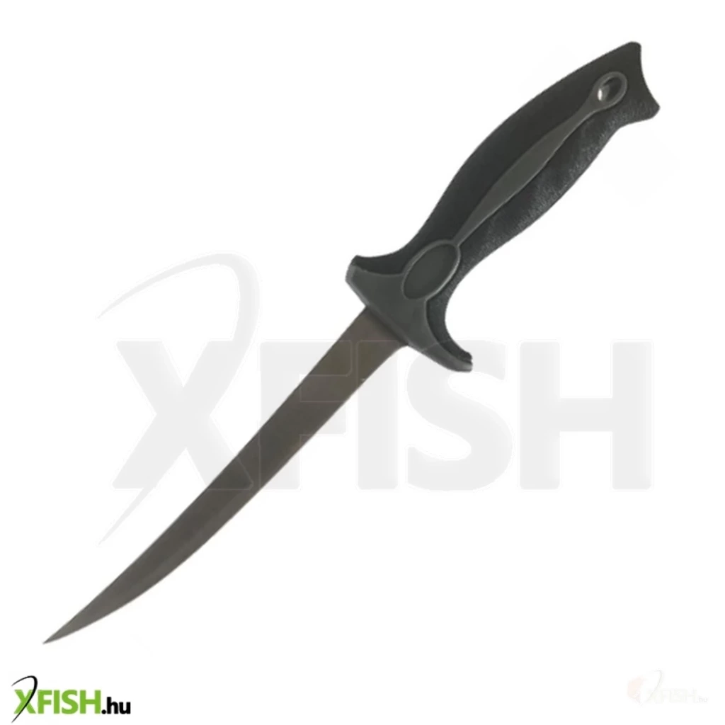 ROZSDAMENTES ACÉL FILÉZŐKÉS 18CM PENGE. Kiváló minőségű acél filézőkés. 20cm hosszúságú penge, 14cm hosszúságú gumírozott markolat. A késhez 1db, övre szerelhető tok is tartozik.