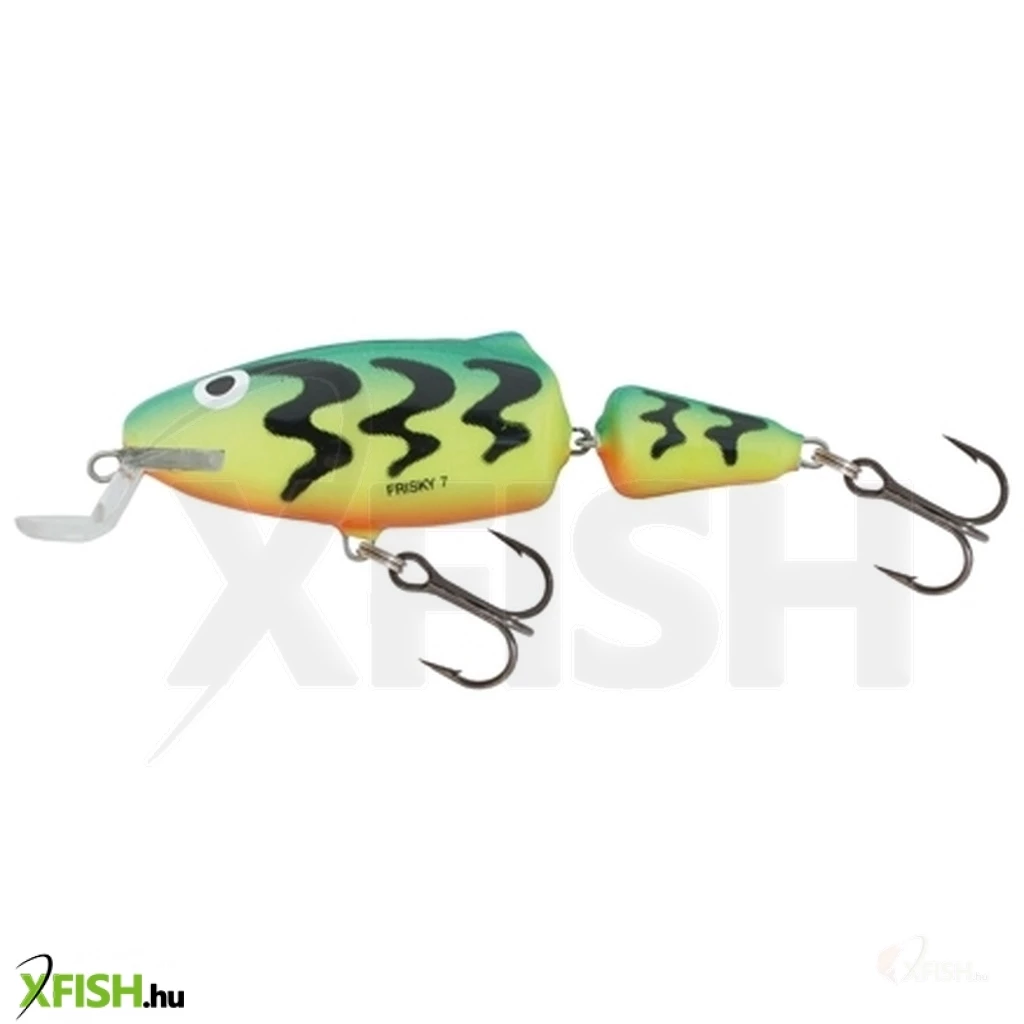 A Salmo cég legifjabb gyermeke ez a kétrészes modell. Hosszú éveken át kísérleteztek a kétrészes műcsalikkal, míg kialakult a végleges forma. A tervezők legfontosabb feladata volt a hidrodinamikai és a aerodinamikai tulajdonságokat megfelelően kiválasztani és egybegyúrni. Azaz amellett, hogy a gyors bevontatás során is kiegyensúlyozottan működik, dobás közben, a levegőben is jól viselkedik, nem akad vissza, mialatt igen távolra dobható. A Frisky egyféle méretben, kétfajta kialakításban kapható: rövid csőrrel felszíni, míg hosszú csőrrel mélyretörő változatban. Halfajok: csuka, süllő, pisztráng, sügér Speciális helyek, szituációk: Folyókon tavakon kora nyáron a felszíni, míg később a mélyretörő változat ajánlott