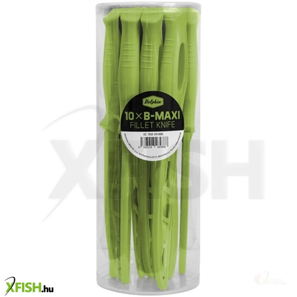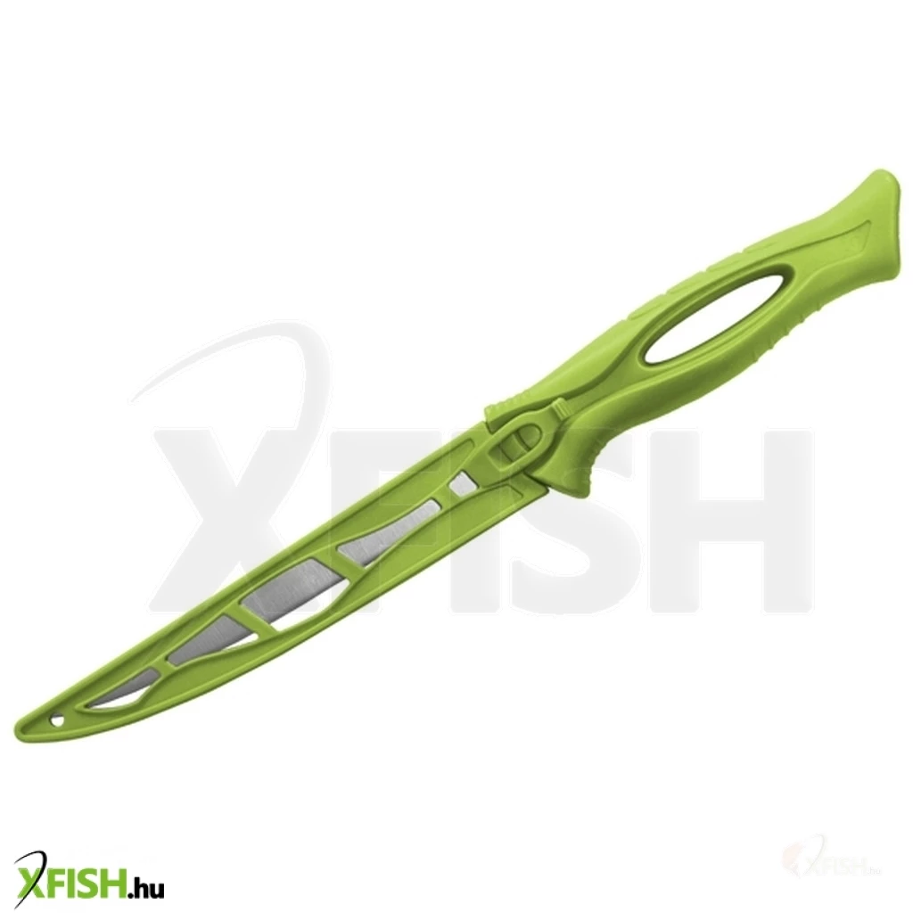 Egyszerű filéző kés B-MAXI extra flexi pengével, melynek segítségével gyorsan kifilézi a halat vagy elkészíti a húst. A penge és a tok kirívó zöld színű, így nem veszik el a horgász kellékei között. Nagyszerűen megállja a helyét műhelyében vagy kertjében is. Nagyon könnyű, biztonságos műanyag tokkal kapható.