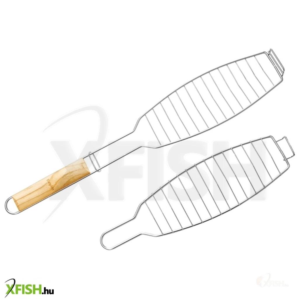 Grillrács, főként halkészítésre. Tegye a halat a rács két szétnyitható része közé és a grillezzen. Ne feledkezzen meg a grillrácsot forgatni . Fából készült nyéllel van ellátva, a fém részek korrózió védettek. A kettős pozicionálásnak köszönhetően különböző vastag halakat vagy húst készíthet.