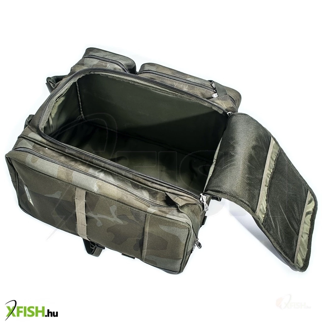 Tudunk rá széket, pontymatracot akasztani , az erre kialakított D gyűrűknek köszönhetően. Leszúrókat is tárolhatunk az egyik zsebében . Nagyméretű cipzárjai kényelmes használatot tesznek lehetővé.