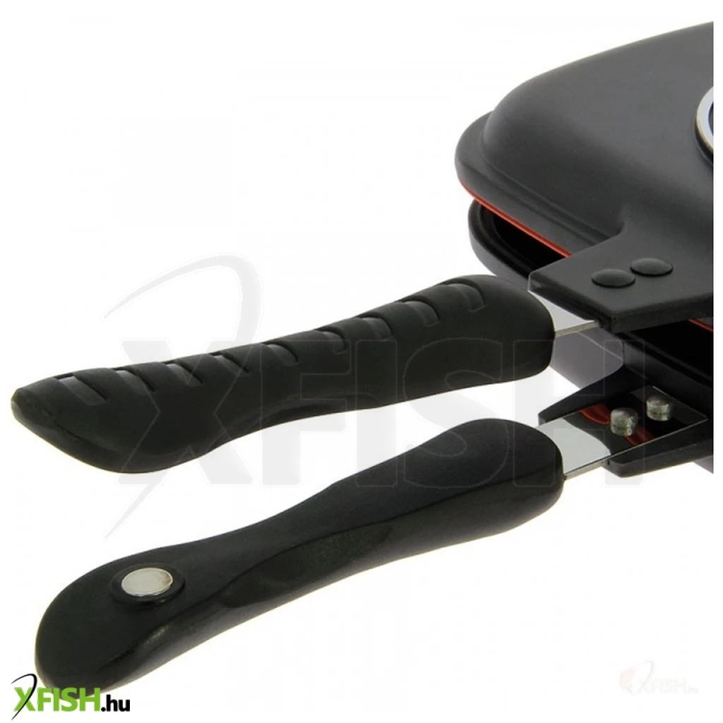 A serpenyő tapadás mentes bevonattal, mágneses fogantyúkkal és szilikon tömítéssel rendelkezik, hogy megakadályozza a szivárgást zárt állapotban.