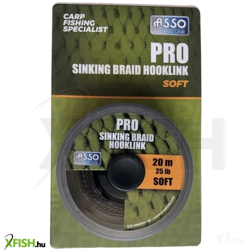 Az ASSO PRO SINKING BRAID SOFT 20M hooklink egy nehéz, lágy, gyorsan süllyedő, ólommentes sötét barna színű előtét zsinór, mely az ólmozott zsinórhoz hasonlóan köthető, de elég lágy és nehéz ahhoz, hogy a fenékre süllyedve észrevétlen maradjon a halak számára. A zsinór színe segíti abban, hogy diszkréten az aljzat hátterébe olvadjon. A színeket úgy választották ki, hogy azzal még nedves állapotban is elérhető legyen egy olyan fokozott rejtőképesség, ami megtöri az előke kontúrját, láthatóságát. Az ASSO PRO SINKING BRAID SOFT 20M hooklink szövött zsinórt arra tervezték, hogy ellenálljon az erős vízi növényzet, a kagylópadok és egyéb, zsinórt koptató víz alatti akadók dörzsölő hatásának. A 20 m-es kiszerelés lehetővé teszi a hosszabb zsinórlesúlyozást.