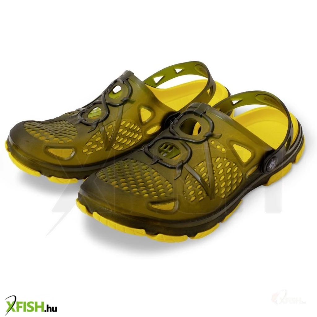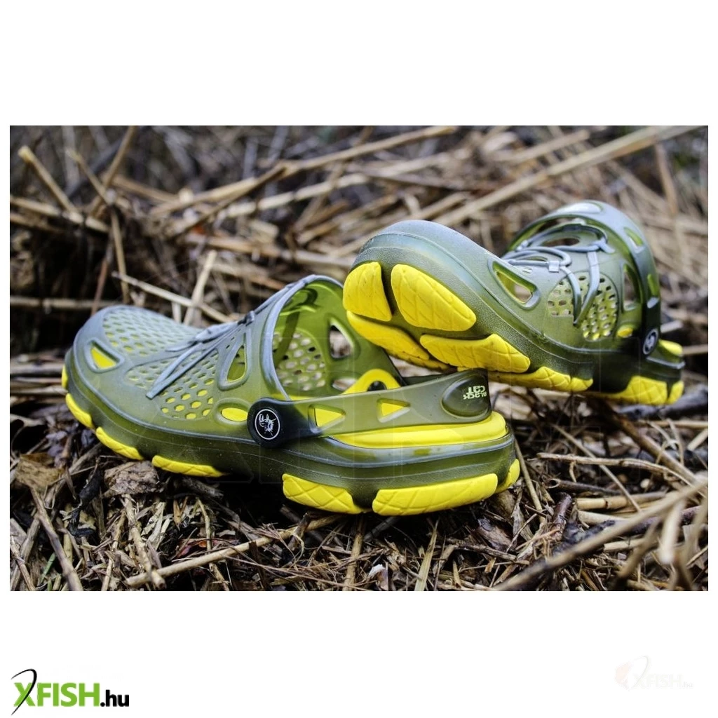 leírás: Erős és kényelmes cipő a vízpartra és a mindennapokhoz. A Cat Clog sportos megjelenésével és kényelmes formájával egy könnyen tisztítható és gyorsan száradó modell. A szellőző nyílások a felületen elosztva találhatók, ezek felelősek a megfelelő szellőzésért a parton, illetve a komfortos viseletért a vízben is. Külső anyag pille könnyű és gondoskodik a lábak megfelelő védelméről a horgászhelyen. Sarokpántja hátrahajtható a nagyobb biztonságért, vagy akár előre, hogy a kapás észlelésekor a horgász könnyen beleugorhasson az ágyból felpattanva.